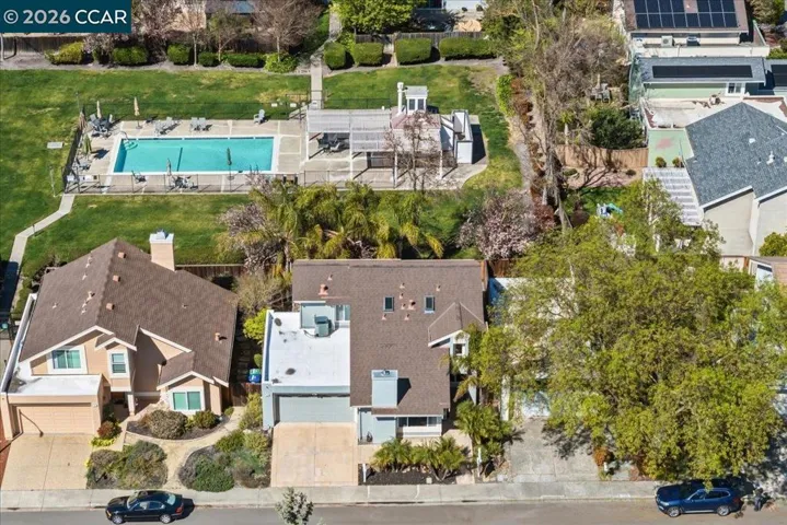 Experience the Good Life in San Ramon. This beautifully maintained 3-bedroom, 2.5-bath home is ideally situated in the heart of central San Ramon—just steps from Montevideo Elementary and minutes from City Center Bishop Ranch, parks, dining, and convenient freeway access. The best of the East Bay truly sits right outside your door. Inside, the light-filled living room welcomes you with soaring vaulted ceilings and a cozy wood-pellet fireplace. The formal dining room flows seamlessly into a well-appointed kitchen featuring LG stainless steel appliances, granite countertops, and abundant storage. The adjoining family room opens directly to the private backyard, offering effortless indoor-outdoor living with direct access to the neighborhood pool and expansive greenbelt. The home’s thoughtful layout provides the perfect blend of open entertaining spaces and personal privacy. Located within the highly acclaimed San Ramon Valley Unified School District, this property offers an exceptional lifestyle opportunity. front door is North east facing. The HOA includes access to the pool, and well-maintained common areas—adding convenience and community charm.