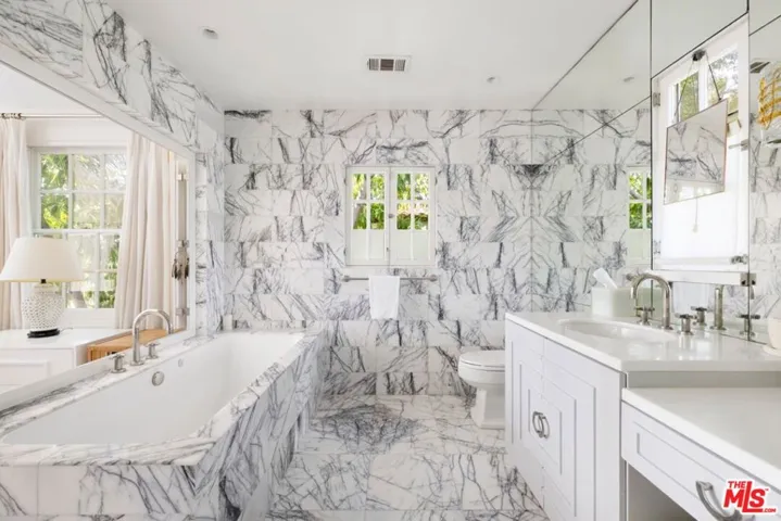Perched on a prominent corner lot in the historic Whitley Heights enclave of the Hollywood Hills, this beautifully renovated Spanish residence blends timeless architecture with sophisticated Hollywood Regency interiors.Inside, light-filled living spaces showcase dramatic city views and effortless flow, creating an ideal setting for both everyday living and stylish entertaining. The spacious living room and chef’s kitchen open seamlessly to the outdoors, where a resort-inspired saltwater pool and spa, cabana, and expansive grassy yard create a private oasis above the city.The luxurious primary suite offers a tranquil retreat complete with a spa-like bath featuring heated floors and a hydrotherapy soaking tub. Additional bedrooms provide comfort and flexibility for guests, work-from-home space, or creative studios.Perfectly situated moments from the studios, Runyon Canyon, and the vibrant shops and restaurants of the Sunset Strip and Hollywood, this exceptional home offers privacy, character, and classic Hollywood Hills living.