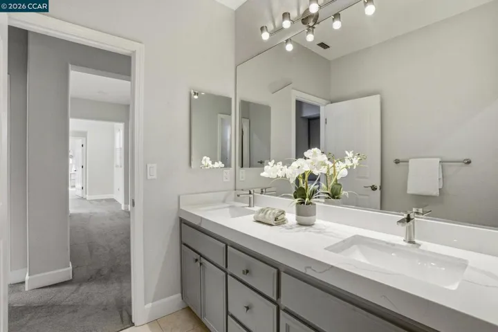 Nestled in the heart of Montecito, this exquisite home epitomizes style, comfort, and functionality with thoughtful updates. A beautifully designed floorplan features elegant formal living & dining rooms. The spacious eat-in kitchen, equipped with high-end appliances, quartz backsplash and countertops flows effortlessly into the cozy family room. One bedroom and full bath located on main level, offering flexibility for guests or a home office. Upstairs, the expansive primary suite becomes a serene sanctuary, complete with a luxurious ensuite bath featuring a soaking tub, shower, updated dual-sink vanity, separate water closet, a large walk-in closet and a private balcony. Three bedrooms and an updated bath complete the second floor. Step outside to your own peaceful retreat: a beautifully landscaped backyard with patios designed for relaxation, alfresco dining, or entertaining. The home backs to open space, adding privacy and a tranquil ambiance, while the neighborhood offers access to exceptional community pool, a playground, and scenic walking trails. Conveniently located within a gated community, near WC, BART, freeways and parks. Owned Solar, 2 Tesla batteries and EV charger. A three car garage with plenty of storage. Close to top rated public and private Schools.