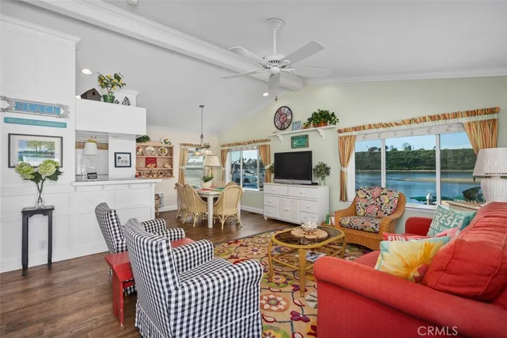 This charming three-bedroom, two-bath waterfront home in the heart of Bayside Village offers the ultimate Back Bay lifestyle in Newport Beach. At approximately 1,152 square feet, this cozy, light-filled home features vaulted ceilings, crown molding, beautiful baseboards, and large windows that frame unobstructed water views stretching toward the coveted Dover Shores neighborhood. Natural light floods every room, with solar tubes brightening hallways and ceiling fans in all bedrooms, keeping the coastal breeze flowing. The spacious kitchen has generous cupboard and pantry space, ideal for everyday living or hosting guests after a sunset cruise. An inside laundry room and two full bathrooms provide practical convenience, while storage sheds and covered parking make beachside life effortless.