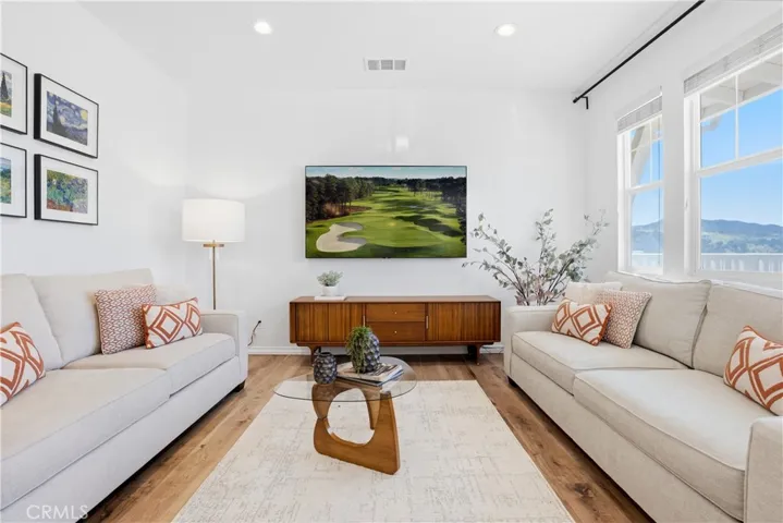 Welcome to 175 Patria, where breathtaking mountain and hill views meet one of the most sought-after locations in the award-winning community of Rancho Mission Viejo. Perfectly positioned directly across the street from Esencia K–8, this home offers the rare combination of convenience, scenery, and everyday livability. From the moment you step inside, the home feels open, bright, and designed for connection. The main level showcases a spacious great room layout where the kitchen, living, and dining areas flow seamlessly together, creating an inviting space for both everyday living and entertaining. Large windows and the home’s elevated setting allow natural light to pour in while framing the sweeping views beyond. The kitchen sits at the center of it all, featuring quartz countertops, a stylish backsplash, and generous prep space that makes hosting effortless. Luxury vinyl plank flooring runs throughout the entire home, offering a modern look with durability and easy maintenance. Upstairs, the primary suite becomes your private retreat. Wake up to incredible mountain and hillside views and step onto your own balcony to take in colorful sunsets and evening lights. The suite also features dual vanities, a soaking tub, walk-in shower, and spacious walk-in closet. Two additional bedrooms, a full bathroom, and an upstairs laundry room complete the second level. Outside, the oversized patio offers the perfect setting for outdoor dining, relaxing, and enjoying the views year-round. With a park just steps away and a two-car garage tucked in the rear, this home delivers both lifestyle and location in one exceptional package. Immerse yourself in the exceptional amenities of Rancho Mission Viejo, including the vibrant Ranch Camp, the state-of-the-art Ranch Cove community pool and gym, and countless recreational opportunities that define the unmatched lifestyle of this community. Exclusive to Rancho Mission Viejo residents are all amenities in the Villages of Sendero, Esencia, Rienda, and future Villages. There are community amenities for all from breath-taking resort-style pools and spas, Esencia school K-8, community farms, fitness centers, guest house, putting green, bocce ball courts, tennis and pickle ball courts, playgrounds, coffee shop, fire pits, an arcade and so much more!