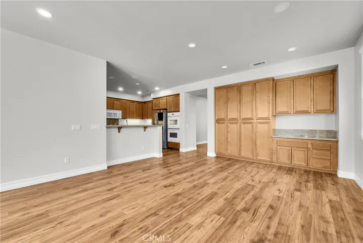 Rare single-story residence in Eastvale offering 6 bedrooms and 3.5 bathrooms, including a fully permitted 633 sqft attached ADU converted from the original three-car garage. Ideal for multi-generational living or potential rental income.With approximately 3,042 sqft of total living space, this thoughtfully designed home features an open-concept layout connecting the spacious family room and entertainer’s kitchen with ample cabinetry and counter space. The adjacent dining area includes additional built-in storage and workspace.The backyard is designed for California living, complete with a resurfaced pool and spa featuring waterfall and lighting elements, all controllable via mobile app. An Aluma Wood patio cover and BBQ island create the perfect setting for gatherings and outdoor enjoyment.The primary suite is privately situated apart from the secondary bedrooms and offers generous space, dual vanities, soaking tub, and two oversized walk-in closets. Additional bedrooms are well-sized and supported by a full secondary bath and guest powder room.The fully permitted 600 sqft attached ADU provides flexible living options — perfect for extended family, guests, or supplemental income.