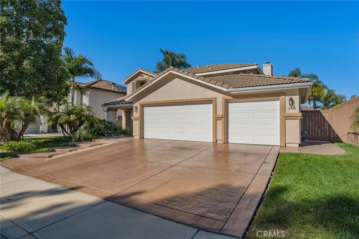 The property is wrapped in stamped and colored concrete, extending through the backyard and the three car driveway for a cohesive, upscale look. The three car garage features epoxy-coated flooring,offering both durability and a polished finish. The backyard provides a delightful setting for outdoor dining and gatherings, with a large play area for children,adding even more functionality. Convenient access to the local elementary, middle and high schools enhances everyday ease. and the home is just a ten minute drive to the beach, bringing coastal living within easy reach. This exceptional property sits in a highly desired gated community.