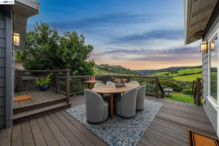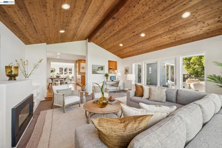 Wonderful Lake Chabot, rolling hills, and expansive greenery are the backdrop for an extraordinary life in this tastefully renovated 3BD/2BA Castro Valley Mid-Century, extensively rebuilt in 2012. Designed to embrace the park’s natural beauty, this 1804 SQFT residence offers sweeping vistas, a spacious deck for seamless indoor/outdoor living, and a backyard that fronts the park. A garden patio and leaded glass door welcome you into the light-filled interior. The living room features a picture window overlooking the front garden, recessed lighting, and hardwood floors flowing into the chef’s kitchen and open dining area. Custom cabinetry and top-tier appliances make cooking effortless, while oversized windows in the inviting family room—with vaulted ceiling and fireplace—frame stunning East Bay hill views, perfect for entertaining or relaxing. Glass doors open to the deck for al fresco dining surrounded by nature. A level lawn offers space for play, with steps leading to a garden retreat. The bright primary suite features a remodeled ensuite. Two generous bedrooms share a hall bath with tub and shower. A 2-car garage provides parking, laundry, and ample storage. Just outside your door: Lake Chabot, sought-after schools, BART, & downtown Castro Valley. Sewer lateral compliant!