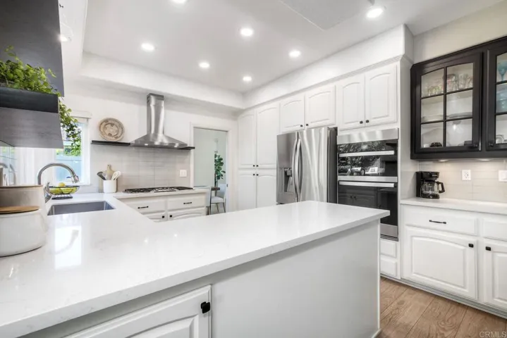 Welcome to this beautifully updated home in the highly sought-after Fire Mountain neighborhood of South Oceanside, featuring a spacious, open floor plan, a private, expansive, park-like lot with a peek-a-boo ocean view from the top patio and plenty of room for a pool, ADU, or future expansion. Enclosed with a new fence for exceptional privacy, the gated front courtyard creates a peaceful welcome. Inside, soaring floor-to-ceiling windows flood the dramatic two-story entry with natural light, leading into the living and dining areas—perfect for entertaining. The stylish kitchen features white cabinetry, quartz countertops, a five-burner gas cooktop, brand-new oven and microwave, sleek wine refrigerator, and a convenient pantry with pull-out shelves. It opens seamlessly to the breakfast nook and inviting family room with a cozy stone fireplace. The main level also includes a newly remodeled half bath, a laundry room with ample storage, and a rare, oversized 3-car garage with abundant overhead storage racks. Upstairs, the expansive primary suite offers double-door entry, vaulted ceilings, a second fireplace, and a generous walk-in closet with built-ins. The spa-inspired ensuite bath features dual vanities, a soaking tub, and a separate shower. Two additional spacious bedrooms and a beautifully updated guest bath with dual vanities provide flexibility for family, guests, or a home office. The beautiful, private backyard is designed for both entertaining and relaxation, with low-water landscaping, easy-care turf, and multiple gathering areas perfect for hosting or enjoying quiet outdoor dining. Additional highlights include LVP flooring throughout, a three-year-old roof, new backyard fencing, dual-pane energy-efficient windows, central air conditioning, and a whole-house water filtration and softening system. Ideally located Just minutes from some of North County’s most stunning beaches, Carlsbad Village, Michelin restaurants, trendy bars, boutique shopping and Highways 5 & 78, this property offers the ultimate coastal lifestyle.
