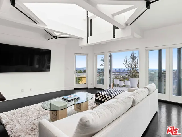 Perched high above the Sunset Strip on iconic Sunset Plaza Drive, this striking contemporary residence captures sweeping views across Century City, the ocean and the surrounding canyon landscape. Designed by noted architect Brian Murphy and featured in Elle Decor, the home is a rare example of timeless Hollywood Hills architecture paired with modern livability. Spanning approximately 2,933 square feet, the residence offers three en-suite bedrooms arranged across three light-filled levels. At the top of the home, a dramatic great room showcases soaring ceilings, skylights that flood the space with natural light, and walls of glass that open to a private balcony framing panoramic city and canyon vistas. The open-concept kitchen is both sleek and functional, appointed with black marble countertops, a Gaggenau refrigerator, and premium Miele appliances. A sculptural floating staircase connects each level, creating a sense of architectural flow throughout the home. Each bedroom features distinctive design elements, private outdoor access, and captivating views. The primary suite is a true retreat with double-height ceilings, expansive floor-to-ceiling windows, a private balcony, and a spa-inspired bath complete with soaking tub, dual vanities, LED-lit mirrors, and a striking marble shower. With a two-car garage and the world-class dining, shopping, and nightlife of the Sunset Strip just moments away, this architectural residence offers an exceptional opportunity to experience refined hillside living in one of Los Angeles’ most coveted locations.