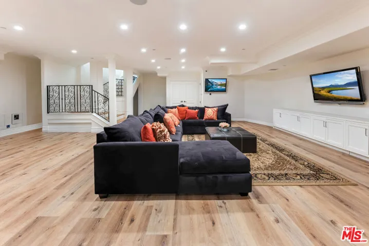 Wonderful opportunity to live in Brentwood on the most walkable street! This Mediterranean home is newer – 3 levels, huge entry, open floorplan, large kitchen with center island and separate “cooks kitchen area”. Family room with French doors opening to yard. Formal dining room and guest suite on main level. Upstairs is a large primary suite with large bathroom and dual closets. There are 3 additional ensuite bedrooms all high ceilings and wood floors throughout. The lower level has a theatre and family room and 2 additional bedrooms ensuite (could be a gym) and laundry is located there. The yard accommodates outdoor dining, a basketball area and a small office or additional storage. The home is gated with a 3 car garage and plenty of parking. Enjoy all the amazing cafes and restaurants along San Vicente as well.
