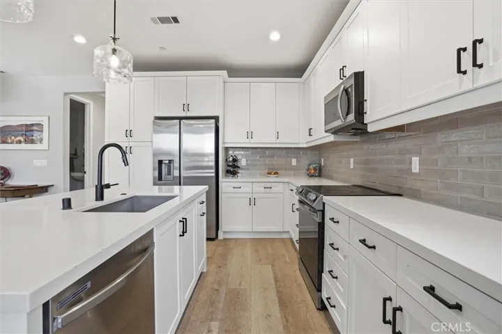 Looking for turnkey living in the heart of SLO? Look no further, this beautiful 3 bedroom, 2.5 bathroom home is it! Airy and filled with natural light, the main living space features an open floor plan between the living room, dining room, kitchen and back yard. The kitchen has quartz counters, a double undermount sink on a large island and all-electric stainless steel appliances! The back yard faces the creek for peace and privacy while you sit under the covered patio or practice your putting on the mini-green! Upstairs the bedrooms connect via a wide hallway that also conveniently holds the laundry closet and extra cabinets. The master bedroom enjoys a view of the creek and eucalyptus trees, a walk-in closet, and a luxury bathroom with dual sinks, and a glass shower enclosure. The home also has AC and an owned solar system so you can stay comfortable in any weather! Perfectly located in San Luis Ranch, this home is just a short distance away from the best shopping in SLO as well as the SLO Ranch Marketplace which has groceries, restaurants, a gym and more! Come and see it today!