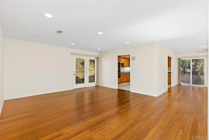 Tucked away at the end of a quiet cul-de-sac in the scenic hills of Hidden Meadows, this beautifully situated home offers privacy, comfort, and stunning natural surroundings in North Escondido. Set on a very private lot with tall trees and peaceful scenery, this 3-bedroom, 2.5 bath, 2386 sq foot residence provides the perfect blend of tranquility and convenience. Inside, you’ll find engineered hardwood floors that add warmth and style throughout the main living areas, complemented by newer carpet in 2 bedrooms for added comfort. The kitchen features newer appliances and offers a roomy, functional space for cooking and gathering. Large family room downstairs has a wood-burning fireplace and an attached powder room. Portions of the interior have been recently repainted, giving the home a fresh and inviting feel. Step outside and enjoy the beauty of the property, complete with fruit trees and the serene atmosphere Hidden Meadows is known for. Whether relaxing on the dramatic deck or entertaining guests, the setting feels private and surrounded by nature. Owners will have use of Meadows Home Association pool, tennis courts and clubhouse, only a few blocks away. Additional conveniences include a refrigerator, washer, and dryer that convey with the property, making the home truly move-in ready. Attached 2 car garage has its own mini-split AC unit. Located in the desirable Hidden Meadows community of North Escondido, this home offers peaceful living with easy access to nearby golf, hiking trails, and the amenities of North County San Diego. Community has its own fire station, market and restaurants. The I-15 freeway is a short distance away, for convenient commuting.