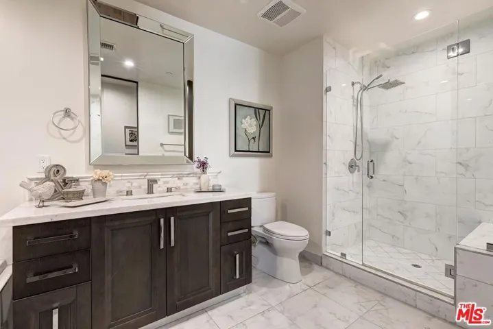 In a sought-after Westwood location, just moments from everything, this three-bedroom single-level residence offers comfort, scale, and privacy rarely found in condominium living. A gracious foyer opens to light-filled interiors, where high ceilings, luxurious wood flooring and a generous layout create a wonderful sense of volume and style. With no common walls and in a corner location, the home offers a rare feeling of privacy and ease. The modern open floor plan features a great room anchored by an inviting formal living room with stately fireplace flowing seamlessly into a spacious formal dining area perfectly designed for both daily living and entertaining. The dining room connects to the kitchen by way of a breakfast bar, creating a layout that feels both open and distinct. The gourmet kitchen is a chef’s delight appointed with high-end stainless-steel appliances, Italian-style cabinetry, stone countertops and tasteful tile backsplash ready for any level of expertise. An extended patio runs alongside the dining room and living room, adding an easy connection, through several large French doors, to the outdoors. In addition, a discrete powder room allows for easy large scale entertaining or convenient family gatherings. All three bedrooms are positioned privately along the west-facing side of the home, including a well-appointed primary suite with a spacious closet and a sumptuous bath with a separate shower and soaking tub. Two additional bedrooms share a full bath, thoughtfully located just outside the bedroom wing. The extra bedrooms add flexibility for a large family, multiple guests or the perfect home office. This newer building offers a carefree opportunity to enjoy the space and livability of a true home in one of Westwood’s most desirable neighborhoods mere moments from eclectic Westwood Village, world renown UCLA, Century City business hub, tony Westfield mall, word class Beverly Hills shops and restaurants and is located in the highly desirable Fairburn Elementary School district.