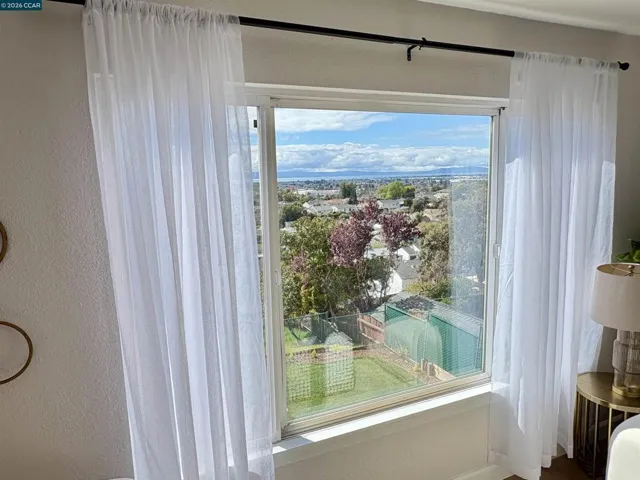 Perched in the desirable Fairmont Terrace neighborhood of Castro Valley, this stunning 4-bedroom home offers the feeling of living among the clouds, with expansive west-facing views of the Bay and San Leandro from the entire side of the home. Set on a generous landscaped lot, the property is designed for both relaxation and entertaining, featuring two spacious patio decks perfect for sunset gatherings. The backyard opens to a large green lawn that flows into an undeveloped downslope area, creating a rare sense of privacy and space. The versatile layout includes two bedrooms upstairs and two bedrooms downstairs, along with two full bathrooms and a convenient laundry area, offering flexibility for guests, family, or a home office. Freshly updated with new interior paint and engineered hardwood flooring, the home is move-in ready while still offering room to make it your own. A rare opportunity to enjoy panoramic views, indoor-outdoor living, and a peaceful hillside setting in one of Castro Valley’s most sought-after neighborhoods.