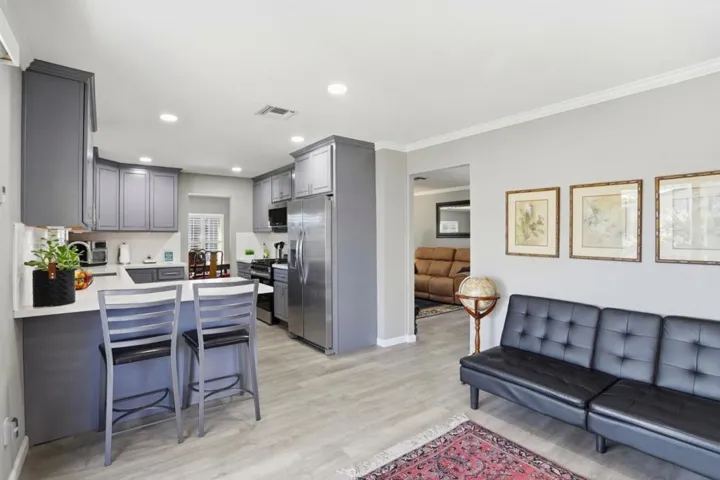 Discover the tranquility of Rodeo Estates, a 55+ community. This beautifully upgraded home features over $50,000 in enhancements and sits on a coveted corner lot. Unwind on your private deck with morning coffee or host a gathering in your barbecue area. Inside, you’ll find two bedrooms and bathrooms, highlighted by a spacious master suite with ample closet space and walk-in shower. A versatile breakfast room or office space, abundant natural light, elegant plantation shutters, and remote-controlled roller shades. The 50-square-foot shed with electricity provides extra storage and a perfect hobby workspace. The open kitchen, welcoming living and dining areas, and a roomy driveway fit up to four vehicles, combining practicality with style. Just minutes from Capitola Village, scenic beaches, and the iconic Santa Cruz Boardwalk, you’ll enjoy easy access to coastal adventures. Also benefit from rent-controlled, low space rent. Stay active with friendly bocce ball matches, relax by the swimming pool, or join neighbors for lively social events in the clubhouse. Additional perks include a pool table, a separate RV parking area, and a community atmosphere that encourages connection and leisure.