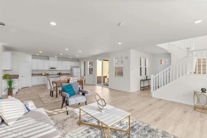 Now available for lease, this spacious, bright, and beautifully designed 4-bedroom, 3-bath detached home at 13044 Bramble St in Eastvale is ready for its next residents. This south-facing corner unit opens to a wide front area surrounded by lush community greenery, filling the home with abundant natural light throughout the day. The first floor features an open-concept layout that seamlessly connects the living room and kitchen, finished with light-colored flooring and fresh interior paint that create a clean, comfortable atmosphere and an enhanced sense of space. Upstairs, a generous loft offers flexible bonus space ideal for a home office, playroom, or media room, alongside well-proportioned bedrooms with thoughtful layouts. The outdoor patio area is a great spot to relax or entertain. The attached 2-car garage adds everyday convenience and solid storage. The owners have added a brand new washer, dryer, and refrigerator, all included, so you can move in without a single errand to run. The home is located in a clean, well-maintained community with a swimming pool, park, and easy access to transportation. Eastvale is one of the Inland Empire’s fastest-growing cities, known for its highly rated schools, abundant new shopping and dining, and a rapidly developing city center anchored by the new City Hall area currently under construction. A rare opportunity to lease a large, move-in ready detached home in a community that has everything you need. Schedule your showing today.