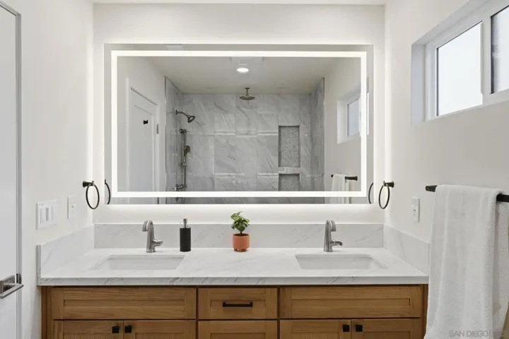 Front home is a 3 bedroom, 2 full bath. The ADU is a studio with full bath. Discover a fully renovated home in one of San Diego’s most desirable, walkable neighborhoods! Just a quick stroll to Kensington’s cafés, restaurants, and bars, and perfectly positioned in the transit corridor. Located on a quiet, non–through street, parking is always easy, thanks to both the low-traffic setting and a brand-new poured-concrete driveway that accommodates up to five cars. This property has been completely remodeled from the roof down, including a new roof, new flooring, new appliances, new kitchen and bathrooms, and all-new electrical, plumbing, lighting, and fixtures. The main home features central air, an open and bright floor plan, and an airy kitchen with a breakfast bar. The spacious primary suite offers sliders to the backyard, See Supplemental Remarks. a large walk-in closet, and a gorgeous en suite bathroom with dual sinks and a beautifully tiled walk-in shower. Generous secondary bedrooms provide plenty of comfortable space. A brand-new studio ADU adds incredible flexibility, complete with a full kitchen, full bathroom, new mini-split system, and hookups for a washer and dryer. Buyers also have the option to build an additional dwelling unit, unlocking future potential. A rare combination of style, function, and opportunity. This home is fully move-in ready with every modern upgrade already done.