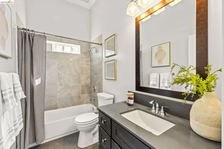 Culture + Community at 3322 Chestnut – Practically rebuilt 10+ years ago with layered areas for entertaining! West Oakland/Emeryville border 4-bedroom, 2-bath home on a 5,130 sq ft lot. Soaring ceilings in a huge open living space, stainless steel appliances in kitchen with caesar stone counter tops, pantry, and light-filled living spaces. Primary suite with walk-in closet and ensuite tiled shower; second bath with tub for those relaxing nights or kids baths. Beautiful deck that looks out to an awesome yard with many entertaining spaces. Lower basement level offers expansion potential – double the square foot of your home, build out a secondary unit to rent; or simply use as is for great storage, workshop and wine cellar. The long driveway that could park 3-4 cars leads to a detached 2-car garage converted to versatile bonus space with two french doors – outdoor living room, home bar, man cave or she shed there is something for everyone! The bckyard features new grass, pavers, and covered pergola with hanging passion fruit vine — perfect for entertaining. Practically rebuilt 10 years ago with updated foundation and systems. Lively, convenient location near Downtown, Emeryville, and major freeways. Spacious, flexible, and move-in ready!