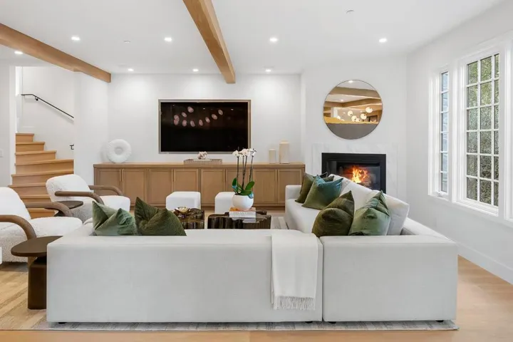 A beautifully reimagined estate on one of South Hillsborough’s most coveted streets. Set behind a private gate and an expansive driveway, this exceptional property pairs timeless architecture with a sophisticated modern remodel. Elegant formal spaces flow effortlessly outdoors, creating a home designed for entertaining. The living room opens to the terrace and gardens, while the dining room, anchored by a sculptural designer fixture, invites memorable alfresco dinners. At the heart of the home, the architectural kitchen and great room showcase a dramatic 14-foot Cristallo island, Viking and Sub-Zero appliances, custom cabinetry, and exposed beam ceilings, all illuminated by striking designer lighting. Five en-suite bedrooms and eight spa-inspired baths are complemented by a media room, gym, two laundry rooms, and five fireplaces throughout. The resort-style grounds offer a pool, jacuzzi, cabana, outdoor kitchen, and multiple terraces, surrounded by mature trees and beautifully layered landscaping. With a solar composite slate roof, EV-charging, new electrical systems, and a new multi-zone HVAC, the home pairs luxury with thoughtful modern infrastructure. Minutes to top Hillsborough schools, Burlingame Avenue, and Burlingame Country Club, this is Hillsborough living at its finest.