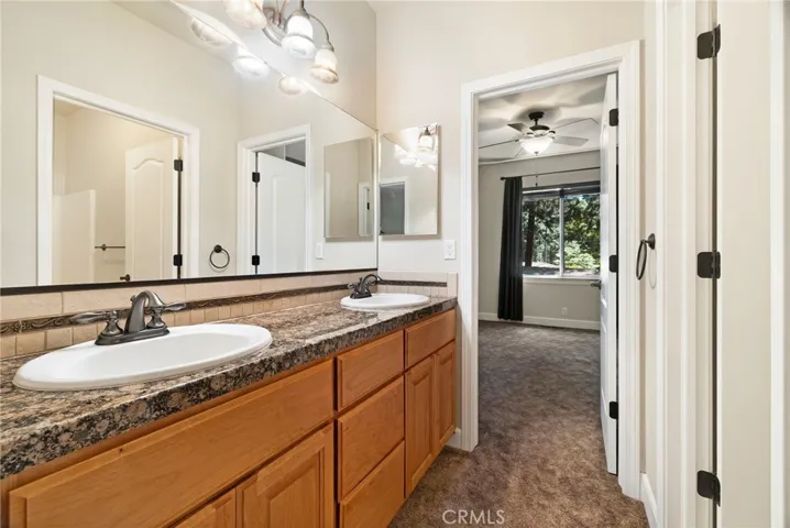 This beautiful 2007 built home has so much to offer including 18 owned solar panels with a battery backup! You will also appreciate a newer HVAC system, new water heater, and recirculating pump, along with a brand new electric garage door opener with smart app capabilities. As you pull up to this property, you will find low maintenance woodland native landscaping. Step through the front doors and you will be greeted by a lovely tiled foyer that leads to the formal dining area with wood floors that open to the cozy living room with a gas fireplace as a centerpiece to the space. This home boasts a split floor-plan where one wing of the house offers two guest bedrooms that are jack and jill to the adjoining guest bathroom. The guest bath features dual sinks with granite countertops and tile backsplash. The vanity area is separate from the shower and water closet offering extra privacy between the two adjoining bedrooms. The kitchen is a delight as it also boasts matching features with granite countertops, a beautiful stainless steel Maytag refrigerator, matching stainless dishwasher, a new stainless microwave, granite composite sink, and beautiful custom tile work backsplash throughout. Off the kitchen is a dining nook that looks out to the lovely backyard deck. The main wing of the house where the primary suite awaits features an extra 1/2 bath near the kitchen area for extra company. The half bath also boasts beautiful surrounding tile work. You will love the spacious primary suite which boasts a stunning bathroom with walk in shower, 2 vanity areas with a soaking bathtub sandwiched between them. The primary bathroom boasts matching granite and tile throughout. The laundry room is also conveniently located inside its own separate room on the way to the oversized 2 car garage where you will find extra built in storage. This home is situated on a .31 acre lot that offers a beautifully maintained raised deck, pavers, raised garden beds, and lamp posts for added backyard charm. The backyard surrounding fence is also newer and stained to match beautifully. This home is totally move in ready, modern, and ready for its next owners! Do not let it pass you by!