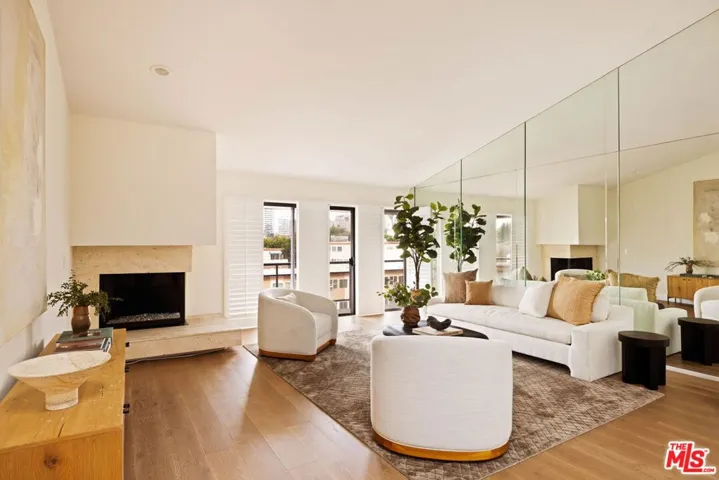 Elevated above the vibrant energy of Century City, this modern, top-floor, high-end condo offers a rare blend of architectural sophistication and effortless luxury. Bathed in natural light at every turn, this unit showcases clean contemporary lines, expansive windows, and an open-concept layout designed for both refined entertaining and everyday comfort. The spacious living and dining areas complete with vaulted ceilings, flow seamlessly onto a private terrace, creating an indoor-outdoor experience ideal for sunset cocktails or quiet mornings above the city. A large, sleek chef’s kitchen anchors the space with custom built-in cabinetry, premium stainless steel appliances, designer fixtures, and stone countertops that elevate both form and function. Cozy up to your living room fireplace where you can relax, read and drift away the days. The primary suite serves as a tranquil retreat, complete with generous walk-in closet space and a spa-inspired bath featuring modern finishes and a calming, minimalist aesthetic. Additional bedroom provides versatility for guests, a home office, or creative studio. Amenities include two assigned, tandem covered secured parking spaces, a spacious separate storage unit, fitness room, sauna, large pool and jacuzzi, and keyed entry. Positioned moments from world-class shopping and dining at Westfield Century City, premier office towers, and convenient access to Beverly Hills and the Westside, this residence places you at the center of it all in both privacy and style. Contemporary living awaits at one of Los Angeles’ most prestigious enclaves.