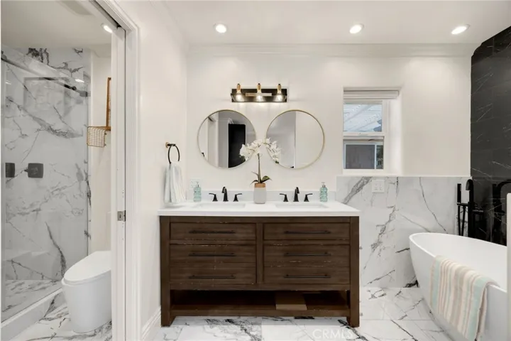 BEAUTIFUL, SINGLE-STORY HOME in a quiet Brea neighborhood. This home features a bright and open floor plan with 4 bedrooms, 2 bathrooms with 1,932 square feet of spacious living space on a CORNER lot! You are welcomed at the entry into the large living room that includes large front bay window with plenty of natural lighting, beautiful hardwood flooring, and a cozy granite faced fireplace. The beautifully designed kitchen features vaulted ceiling, a beautiful kitchen island, luxury Dacor Stainless steel appliances that include a Sub-Zero Built-In refrigerator, 6 burner cooktop, microwave, oven and warming drawer. The kitchen also includes a walk-in pantry, stainless steel sinks, and overlooks into the family room/dining room. Family room features a beautiful fireplace, built in buffet for storage and has direct access to the backyard. The Primary bedroom suite features a large bedroom area with bay window seating areas and has direct access to the private patio, walk-in closet with organizers, a beautiful ensuite bathroom that includes a double sink vanity, soaking tub and a beautiful glass enclosed shower with rain head shower system. Down the hall are additional generously sized bedrooms with plenty of closet space and a beautiful hall bathroom. The private backyard features built in BBQ area with seating, gas firepit area, RV parking and covered patio area. Additional features of the home include 2 car garage, Solar panels to save on your utility bills, LARGE Front yard area and NO HOA. This home is WALKING DISTANCE TO MARIPOSA ELEMENTARY and located in the Award-Winning Brea Olinda Unified School District. It is just a few minutes away from Downtown Brea, Brea Mall, entertainment, restaurants, shopping and has easy freeway access. This home is one you won’t want to miss!