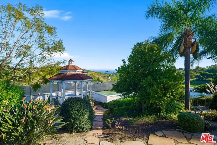 Sitting on nearly an acre, this exceptional home offers sweeping ocean views, resort-like amenities, and privacy within gated Cavalleri estates. A double gated driveway opens to a beautifully landscaped property designed for relaxation and grand-scale entertaining. The light-filled residence captures the essence of coastal living, with expansive patios and outdoor spaces that take full advantage of the stunning surroundings. The ocean view primary is on the entry level, along with another bedroom and bath. Upstairs are two more bedrooms, both en-suite, along with a huge bonus room, also with beautiful ocean and hillside views. A sparkling pool and spa sit at the heart of the grounds, complemented by a lighted tennis court, lush lawns, and vibrant gardens dotted with mature fruit trees. Multiple outdoor gathering areas create the perfect setting for hosting, including a charming outdoor fireplace lounge and a barbecue area ideal for sunset dinners and weekend gatherings. The generous grounds, which are fully walled and gated, provide a sense of serenity and seclusion while still being just minutes from Malibu’s shops, restaurants, and beaches. Private, picturesque, and designed for effortless indoor-outdoor living, this Mediterranean retreat offers the ultimate Malibu lifestyle whether enjoying quiet coastal mornings or entertaining under the stars.