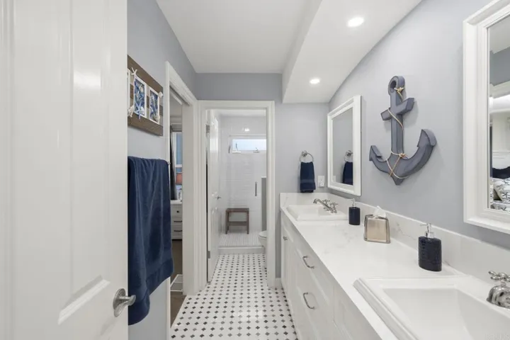 Exceptionally quiet—this beautifully renovated Del Mar home offers a quiet and private coastal retreat with sweeping ocean views from all three levels. A substantial privacy wall separates the residence from Del Mar Heights Road, creating peaceful interiors while positioning the home perfectly to capture breathtaking sunsets over the home’s breathtaking ocean views. The home’s main outdoor living spaces are thoughtfully oriented toward the alley side of the property, where you’ll enjoy expansive ocean views and a tranquil setting free from street noise. This unique layout also provides easy and convenient access to the garage from the alley, making daily arrivals and departures effortless. Inside, the home is generously sized and designed for both comfort and entertaining. A spacious secondary bonus living area creates the perfect environment for a media room, kids’ lounge, or guest retreat. This level also features a custom bar, an additional powder room, and a hidden wine storage closet, making it an ideal space for hosting gatherings or giving family and guests their own private area within the home. Recently renovated throughout, the residence showcases beautiful coastal finishes with an updated kitchen and fully remodeled bathrooms that blend timeless design with modern functionality. With ocean views from every level, exceptional privacy, and a central location walkable to the Del Mar Plaza, Board & Brew, Darshan Bakery, and all that Del Mar has to offer, this home presents a rare opportunity to enjoy the coastal lifestyle with both convenience and tranquility.