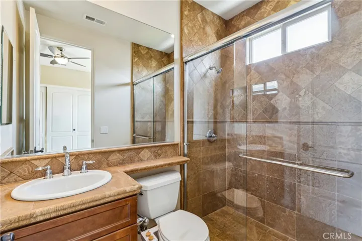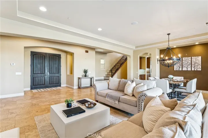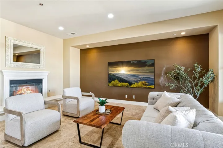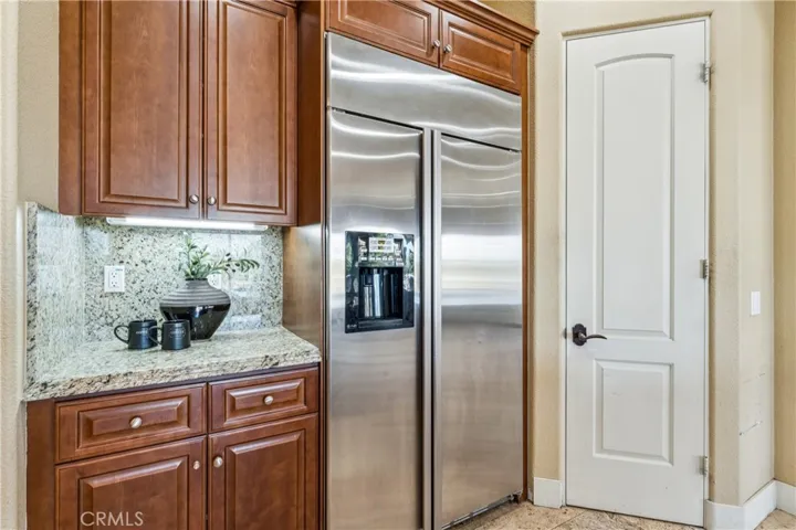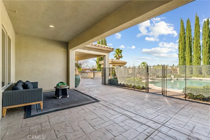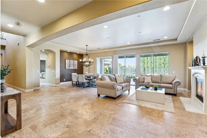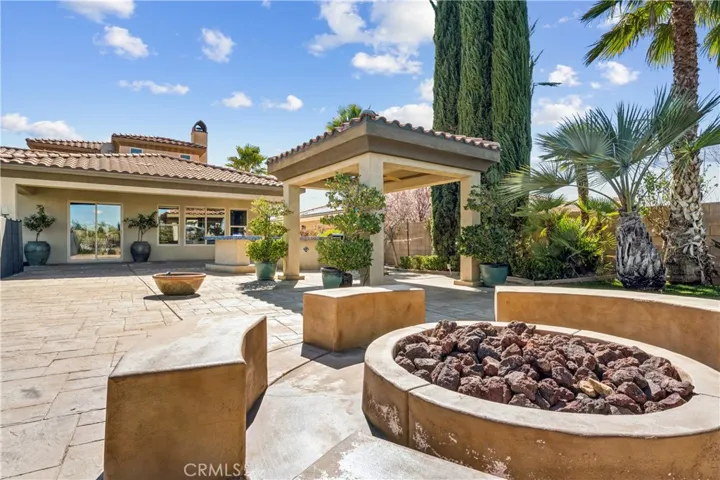 The backyard is truly an oasis, designed for enjoying Southern California’s beautiful weather. The resort-style setting includes a pool, separate spa, outdoor kitchen, large fire pit with seating area, and multiple spaces for gathering and entertaining.