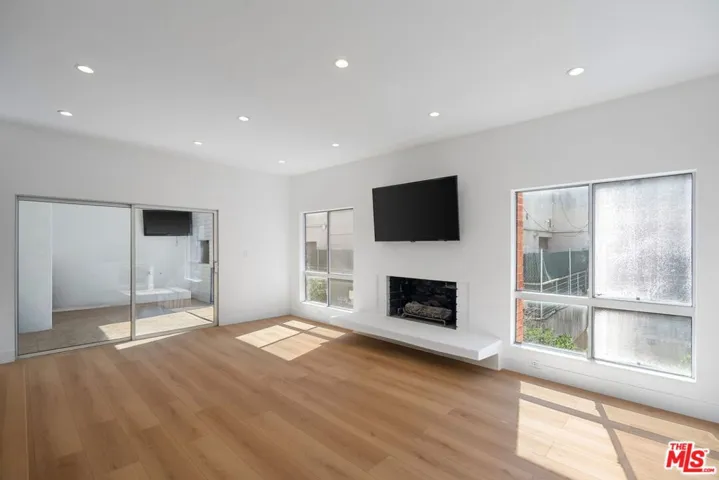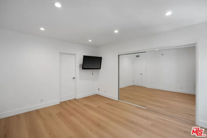 Welcome home to one of Encino’s most distinctive condo addresses. This recently renovated 3-bedroom, 2-bath residence at the iconic Woodley building delivers a living experience that is rare in the condo market, combining refined interiors, spa-quality finishes, and a private outdoor terrace, all on the top floor with no neighbor above. Step inside to find wide-plank blonde hardwood floors flowing throughout a sun-drenched open floor plan. The living and dining areas make an immediate impression: a full-wall mirrored panel doubles the sense of space, while an orbital globe chandelier adds effortless elegance. Sliding glass doors connect the living room seamlessly to your private covered patio, a true outdoor living room complete with a wall-mounted TV and ceiling fan, perfect for California indoor-outdoor living. The kitchen features rich raised-panel cabinetry, granite countertops, a diamond-pattern stone tile backsplash, and stainless steel appliances, including a French door refrigerator and dishwasher. A peninsula bar opens to the dining area, ideal for entertaining. A wet bar with a beverage refrigerator is tucked into the living space, adding a convenient hospitality touch. The primary suite is a retreat unto itself, with a spa bathroom showcasing dual backlit LED vanity mirrors, quartz countertops, white shaker cabinetry, and a frameless glass walk-in shower wrapped in floor-to-ceiling wood-look tile with a rain head fixture and built-in niche. The second bath continues the theme with a tub/shower combo, glass sliding doors, and a rain shower. The third bedroom offers exceptional versatility as a home office, guest suite, or creative space. Residents enjoy one of the best lobbies in the Encino condo market: elegant designs, terrazzo floors, and a welcoming lounge area that creates a genuine sense of arrival. The secured garage features gated key-access entry with elevator, and includes two separate assigned parking spaces, one on each side of the drive aisle, and four guest parking spaces, offering privacy and ease of access. Top-floor living, refined finishes, and a private outdoor retreat. This is Encino condo living elevated. Schedule your private showing today.