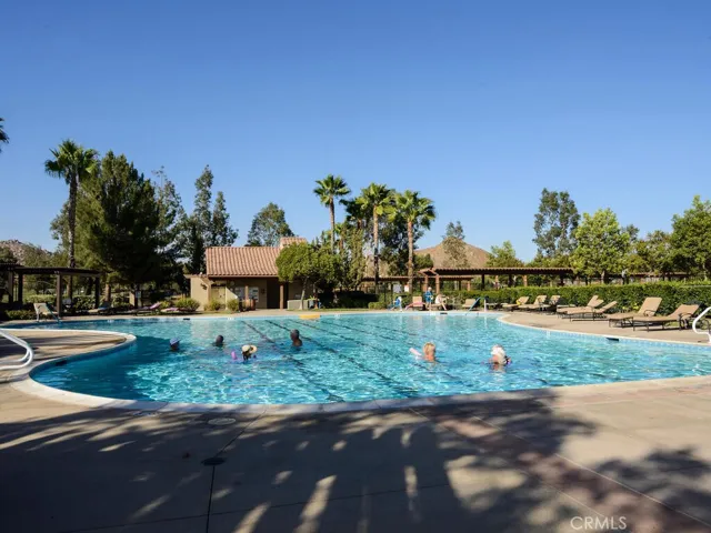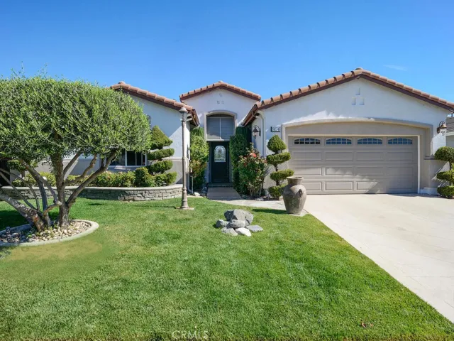 Championship Plan 3, the largest plan in the community, which has 3 bedrooms, and 3 bathrooms, plus an office, in 2755 square feet. The home is located in the highly sought after Four Seasons of Hemet, with view of the 13th tee box right outside the rear patio. This home has been highly upgraded in so many ways, but to list just a few designer touches, all the woodwork has been replaced with rich dark wood, the doors are all arched to add to the theme of an Italian Tuscan villa, all cabinets, and many built ins are designer grade. The tile flooring has several designs from the foyer through the living room to the huge French doors out to the back patio. Notice the coffered ceilings The primary bedroom closets are oversized and have thoughtfully designed closet organizers installed, and there is a jetted spa tub to relax away all your worries. In addition to all this, there is PAID OFF SOLAR. Be sure to tour The Lodge, and experience the amenities, which include The Bistro, onsite restaurant with sit down service, billiards, movie theater, library, craft room and game rooms. The huge ballroom is always busy getting ready for the next program being held there…Banquets, bingo, live productions, dancing and much more. Outside the Lodge, we find the open patio area, offering concerts and summer programs, the pool with exercise classes or lap swimming, the gym building with hair salon. Behind the gym building, you find the shuffleboard, bocce ball, tennis and pickleball.