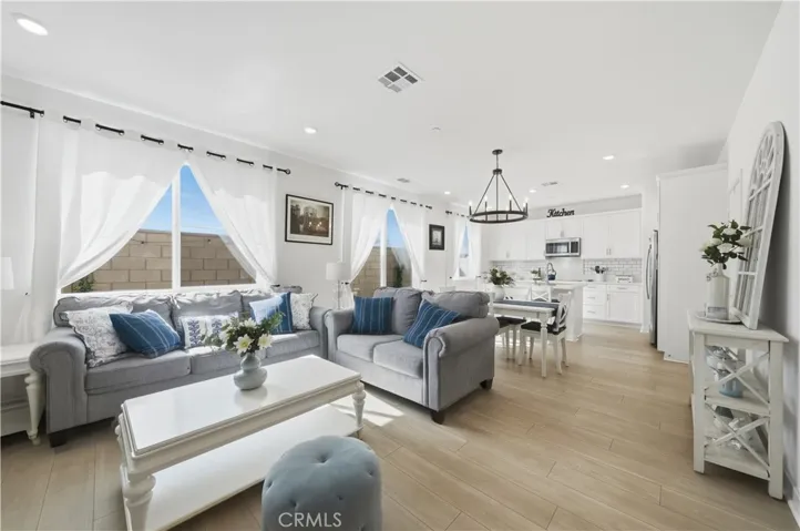 How does a beautiful new build in the middle pocket of town where they are done building homes sound? This 6 month old home is like buying a brand new model home with all the designer touches already done throughout! Gorgeous, light and bright 2025 Lennar townhome within the Murrieta School District boundary lines. Unfortunately due to circumstances beyond their control, the sellers have to relocate for work. This is your chance to get into a new property in one of the most desirable parts of Winchester, close to shopping dining and the French Valley Airport. This is a gated community with just 90 townhouses with plenty of community amenities including a pool, spa, and shaded park for children. The downstairs boasts a beautiful kitchen with white cabinetry, quartz countertops, deep farmhouse sink, white subway tile backsplash and GE Profile stainless steel kitchen appliances. There is also a conveniently located downstairs powder room for guests. As you venture upstairs you will notice the spaciousness of the upstairs bedrooms. These are not your typical 10×10 bedrooms that most homebuilders are making nowadays. The primary bedroom may be the best room in the house with green open space behind you and endless afternoon sunsets over the mountains behind you. Convenience of home duties abound with an upstairs oversized laundry room. Save on energy costs with a 7 panel leased solar system that’s already installed as well as a Tesla car charger in the garage. This home still has the builder warranties in place. Do not hesitate to move on this one today!