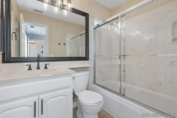 Beautifully upgraded Rancho Peñasquitos home with vaulted ceilings, brand-new windows, and abundant natural light throughout. This move-in ready property features solid hardwood floors and a desirable south-facing backyard that fills the home with sunshine. Flexible floor plan includes two bedrooms and a full bath and a powder room on the main level with a total of 5 bedrooms and 3.5 bathrooms. The spacious kitchen offers granite countertops, center island, stainless steel appliances, double ovens, gas range, and an eat-in dining area overlooking the backyard. The sliding glass doors off the kitchen/breakfast area create seamless indoor-outdoor living, opening to a private patio with outdoor dining and raised seating — perfect for entertaining. New trending landscape with low maintenance and drought tolerant features. Located in a highly sought-after neighborhood close to top-rated schools, parks, and shopping — this is Southern California living at its best.