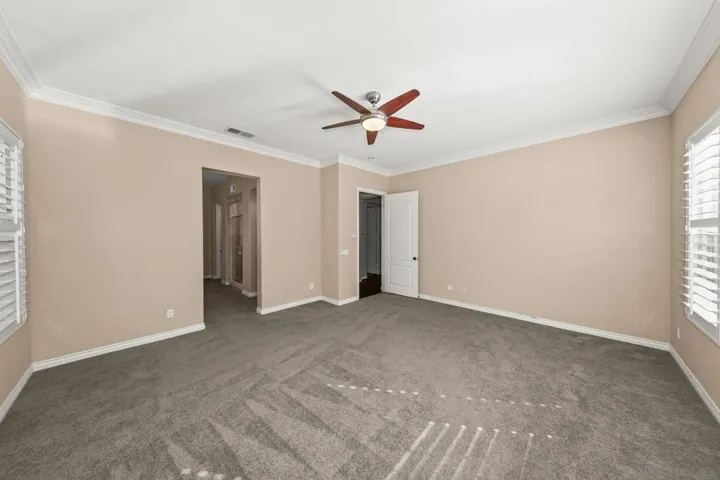 Welcome home to luxury single-story living in Rolling Hills Ranch, one of Eastlake’s most sought-after master-planned communities surrounded by scenic foothills, open space, and miles of walking and biking trails. This beautifully designed 4-bedroom, 3-bath home offers approximately 3,079 sq. ft. of light-filled living space with soaring ceilings, expansive windows, and plantation shutters throughout. The flowing layout includes a formal living room, dining room, and spacious family room with a fireplace, ideal for both relaxed living and entertaining. At the center of the home, a private interior courtyard with a fireplace creates a warm and inviting setting for morning coffee, evening conversations, or intimate gatherings under the open sky. The low-maintenance backyard and patio provide additional outdoor space to relax and entertain. The chef’s kitchen is ready for culinary creativity, featuring granite countertops, high-end appliances, and a 48-inch Kutch 7-burner gas range and dual ovens—perfect for whipping up everything from casual breakfasts to impressive dinner parties. Just beyond, the oversized primary suite offers a private retreat, complete with a spa-like bath and an exceptionally large walk-in closet. Residents enjoy resort-style amenities at the Rolling Hills Swim Club, including a pool, spa, clubhouse, barbecue areas, playground, and scenic community trails. Experience the magic of space, comfort, and luxury living in the heart of Rolling Hills Ranch. Schedule a showing today!