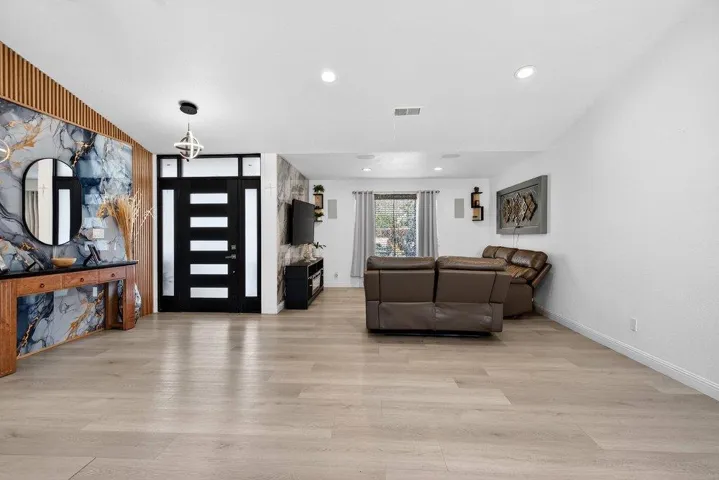 Charming Home with Private ADU Ideal for Multi-Generational Living & SOLAR Included! Welcome to your new home featuring a thoughtfully designed Accessory Dwelling Unit (ADU) 483 sqft. additional with its own private entrance perfect for multi-generational living, guests, or income potential. The ADU offers a comfortable bedroom, living room, full kitchen, and bathroom with a walk-in shower. The main home showcases an inviting open-concept layout that seamlessly connects the living room, dining area, and kitchen. The kitchen features a gas range, newer countertops, and freshly painted cabinets. The living room is equipped for surround sound, making it a great space for relaxing or entertaining. Laminate flooring runs throughout the main living areas, while the bathroom is finished with tile and a walk-in shower. Two additional rooms located just off the kitchen provide flexible space and can easily be used as bedrooms, home office, or hobby room. Step outside to a backyard designed for entertaining, with a built-in BBQ area, a cozy sitting space, and low-maintenance turf. The property also includes a storage shed and a side yard, offering extra storage. Conveniently located near Las Animas Park and nearby shopping, this home combines comfort, flexibility and a great location.