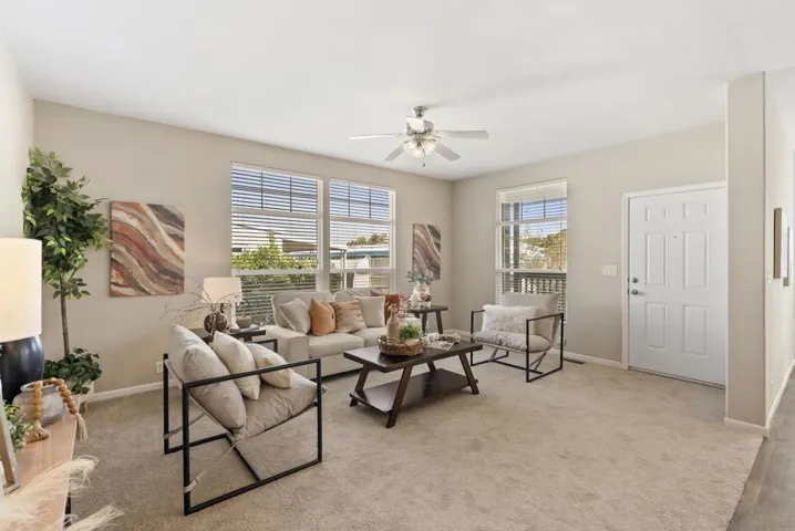 Welcome to Valle Verde, a highly desirable 55+ community in San Marcos, known for its low land lease, offering exceptional value in a prime North County location. This spacious 3-bedroom, 2-bath home has been beautifully upgraded and is filled with natural light. The inviting floor plan features fresh interior paint, new carpeting, and comfortable living spaces designed for easy everyday living. The oversized kitchen is a true highlight, boasting abundant cabinetry, generous counter space, and a walk-in pantry. Set on an oversized lot with wonderful curb appeal, the outdoor space features fruit-bearing trees, a front porch and room to relax, garden, or enjoy the beautiful Southern California weather. Residents of Valle Verde enjoy access to community amenities including a pool, spa, and clubhouse/large banquet hall for events all within a welcoming and well-maintained neighborhood. The location offers excellent freeway access and close proximity to shopping, dining, and everyday conveniences. With its generous size, thoughtful upgrades, beautiful kitchen, and sought-after community, this home presents a wonderful opportunity to enjoy comfort, convenience, and value in the heart of San Marcos.