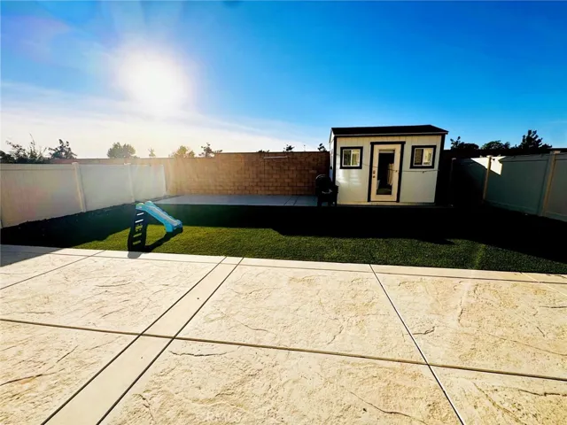 The backyard offers a concrete patio, artificial turf for low-maintenance outdoor living, and a detached studio shed with windows, glass door, recessed lighting, and electricity—perfect for a home office or creative space. Additional features include EV charging outlet and a whole house water filtration system. Conveniently located near shopping, dining, and Lake Skinner.
