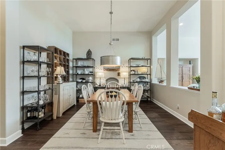 Talk about pride of ownership! This north-facing residence offers charming curb appeal right off the bat and truly stands out in the neighborhood. This 3bed, 3 full bath residence also has an office/den and comes in at 2,356sf of sophisticated living space. Leading off with a beautiful extra-wide front door and wide hallway that lures you right into a stunning open great room with soaring ceilings and lots of natural light pouring in from all over! The interior is defined by durable vinyl plank flooring, elegant plantation shutters, and a cozy wood-burning fireplace with a gas outlet for effortless ambiance. Culinary enthusiasts will gravitate toward the chef’s kitchen, which features premium Bosch appliances, a stainless farmhouse sink, and LED lighting that continues throughout the entire home. The expansive master suite serves as a private sanctuary, boasting a massive closet with custom organizers and a spa-like bathroom centered around an amazing soaking bathtub. Every room is wired for ceiling fans, including an extra-large fan already positioned in the central family gathering room. Outside, the property captures the magic of the region with clear views of the Palomar Observatory and the iconic sight of Temecula’s hot air balloons drifting by in the early morning light. The 35×14 covered courtyard patio provides a serene retreat within a backyard fully enclosed by block walls and featuring stacked block garden beds. Complete with a 3 car tandem garage, an automatic irrigation system, and timed landscape lighting in both the front and back, this home perfectly balances high-end amenities with low-maintenance California living. Conveniently located in a low tax and low HOA neighborhood, this home is close to all major shopping, restaurants, award winning schools and a short 2 min drive to the popular Abelia Sports Park!