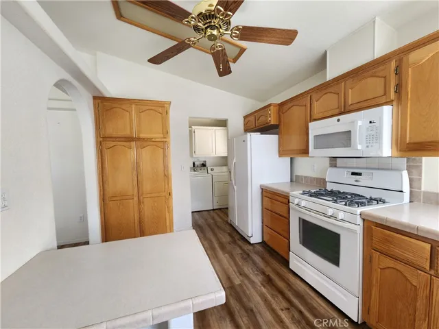 Welcome to this beautifully maintained single-level, 3 bedroom, 2 bathroom home with a large living and dining room, a beautiful kitchen with tile accented counters, a pantry, and ample wood cabinetry. It has a primary bedroom with double sinks and a soaker walk-in tub. Located in a highly desirable 55+ community in Redlands. Built in 2006 and featuring, dual pane windows, and high ceilings, this home offers a light and bright atmosphere and is move-in ready. Inside, you’ll find a functional and inviting floor plan with an inside laundry room. a washer and dryer, and more. Plenty of room for entertaining too! Tons of storage throughout. Covered parking, a raised bed planter, and a utility shed add to the appeal. The home is ready for its next homeowner to simply turn the key and settle in. The community offers low monthly park rent along with amenities that enhance everyday living. Residents enjoy access to a clubhouse, sparkling pool and spa, and a welcoming atmosphere. Perfectly situated for easy entrance and exit. This is a value priced home, affordable, and full of charm.