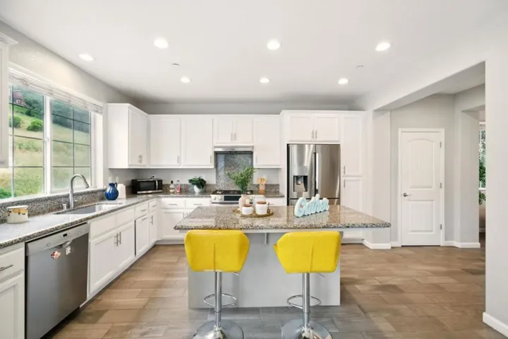 Do not miss out this newly constructed single-family home located in Hayward Hills. This modern tri-level house features a downstairs guest suite, full bath, living room. 2nd floor an open-concept kitchen and family room with an island and stainless steel appliances. Formal dining area, two suites at 3rd floor, The spacious primary bedroom offers comfort and privacy. Inside laundry with washer & dryer, Central HVAC System, Recessed lights, Double paned widows, Attached two-car garage. HOA Due : $240/ Per month. Conveniently located near California State University, East Bay. Ideal for first-time homebuyers or investors. Located in a high-demand rental market.
