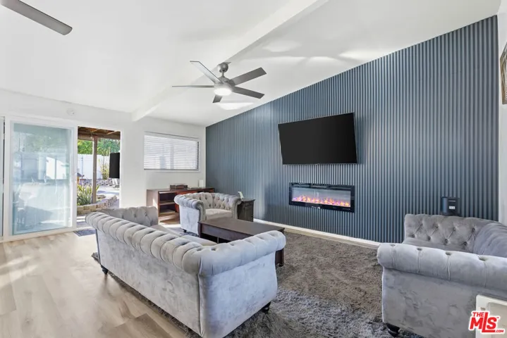 RECENT PRICE REDUCTION! It doesn’t get better than this! Great for work-live situation with detached ADU with separate entry area. No disturbing the main house or walk thru issues.Walk into this gated secured recently remodeled single level home on a corner lot in fabulous valley location. Upon entering, you are welcomed by mature Saguaro plant and wonderful garden and potted planters ideal for growing your own vegetables and herbs. The custom deck and sit down Korean barbeque pit is ideal for entertaining and cozy gatherings. Upon entering front door, be wowed by open feel of the vaulted ceiling in the living room with grey acoustic accent walls and electric wall mounted fire place that also warms up the room. Sellers have added 2 beautiful ceiling fans as well. Kitchen has been freshly painted with newer appliances, touchless faucet and wood engineered floors. The walk in pantry makes organization and cooking a breeze. There are new wood blinds throughout the home. There are 3 bedrooms in the main house. The primary bedroom has a wonderful covered small patio off the back great for shady area to relax and sipping on your favorite drink. The primary bathroom has been remodeled with double sinks and shower. The other 2 rooms serve as bedrooms or home office with shared shower for guests. New sliding doors with built in blindes off living room take you to pool area and amazing guest house. Multiple fruit trees and plants like lemon, passion fruit, morning glory and lavender make this property like your own personal garden oasis. The ADU is spacious and has a bathtub and open living room, dining bedroom area. Non Permitted ADU not difficult to permit.Conveniently located near Topanga Mall, Pierce college and many restaurants. Current owners installed new heat and AC system last year. Buyer to do their own due diligence to verify square footage. GREAT UPSIDE- ZONED LARS AS OF 2025-limited access residential services- allows small scale personal services child care, offices for community services and some assisted living or senior services. check with city.