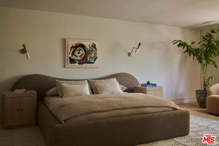 One of the finest mid-century architectural homes in Trousdale, OSKLO House sits on a flat half-acre lot with sweeping views of West LA. Designed by Benton & Parks AIA in 1966 and completely reimagined by OSKLO, this approx. 6,200 SF estate blends iconic design with modern luxury. A dramatic courtyard with a sculptural fountain sets the tone for the fully furnished, turnkey residence. Inside, the living room features an oversized fireplace and floor-to-ceiling windows, creating a striking introduction to the home. Custom OSKLO furnishings, museum-quality antiquities, and curated vintage pieces beautifully complement the rich materials and finishes throughout. No expense was spared. The kitchen embodies classic Beverly Hills living, complete with a breakfast nook, butler’s pantry, and a wall of windows opening to the garden. The primary suite, showcasing nearly $1 million in stonework, offers wraparound windows overlooking the backyard and city lights beyond. A long hallway above a Japanese-inspired atrium leads to three ensuite bedrooms, with an additional ensuite near the kitchen and a pool bath by the outdoor cabana ideal for hosting.Outside, the angular pool pavilion includes multiple lounge areas, a swimming pool, fire pit, and outdoor bar, capturing the essence of Trousdale’s signature indoor-outdoor lifestyle.