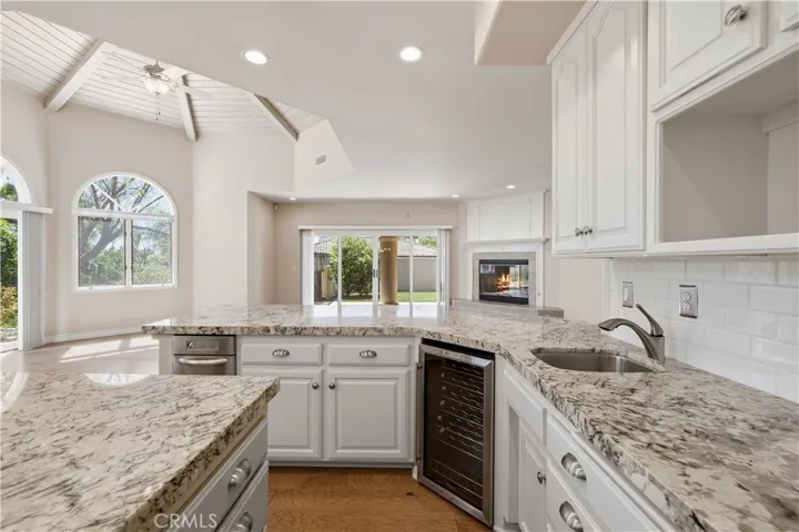 A gracious 3,492 ± sq ft floorplan built in 1991 features three bedrooms, office, multiple sitting areas, three bathrooms, and multiple living spaces designed for both relaxed family living and refined entertaining. Vaulted ceilings in the great room elevate the sense of space, while a well-appointed kitchen with generous island and granite countertops serves as the heart of the home. The adjacent family room and patio access create a seamless indoor-outdoor flow ideal for gatherings or quiet mornings with coffee.