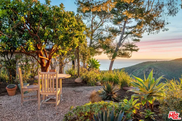 Leave the big city stresses behind when you enter this Zen-like retreat with breathtaking views of the ocean, canyon and mountains. Walls of glass provide the ultimate inside/outside environment, while skylights and clerestory windows allow the infusion of natural light.There is an open floorplan, with the entrance leading to the living room, dining area and family room, all with expansive views and opening to the rear patio and garden.Enjoy similar views from the serene primary suite, with a spacious walk-in closet that could also function as a private office. The second bedroom is also ensuite.The landscaped rear yard features fruit trees and multiple inviting spaces designed for relaxation and entertaining. The garage has direct entry into the house.This home provides a unique opportunity to experience a tranquil lifestyle while still having access to local schools and all the Palisades Village has to offer just moments away.