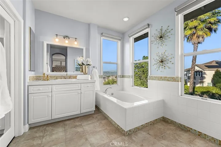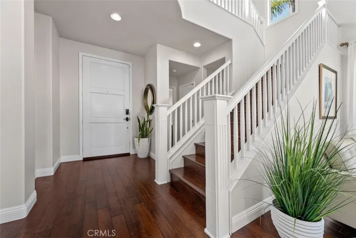 Located within the private gates of Westridge Golf Course Community, this welcoming home offers comfort, privacy, and an open layout designed for everyday living and easy entertaining. A two-story entry sets the tone with its soaring ceilings and immediate views of the inviting backyard, complete with an azure pool, spa & rock waterfall. Welcome guests to the formal living & dining rooms that feature large windows & high ceilings allowing natural light in. The remodeled kitchen anchors the gathering area and shares spaces with the family room, creating a connected place where daily life naturally unfolds. A center island with bar seating features quartz countertops and subway tile backsplash presents refined style with everyday practicality, offering smooth durable surfaces. Newer crisp white cabinetry with display glass accent balance aesthetics & storage. The family room’s fireplace & backyard views make it a comfortable spot at home. The formal dining room that looks out to the pool provide a serene backdrop for intimate family get-together. A main-level bedroom fitted with double french-designed doors is best suited for guests or a home office. The adjacent full bath offers convenience. Upstairs, the primary suite provides a quiet retreat w/ separate walk-in closets and ensuite bath featuring dual vanities, a soaking tub, & a separate full standing shower. 2 additional bedrooms, a dedicated laundry room w/ a folding station, sink & storage adds ease. Natural wood lays flooring throughout the home, adding warmth & timeless appeal. Crown molding enhance the elevated ceiling height, while custom interior wall paint & window coverings perfectly complements the homes look and vibe. This home is powered with fully paid solar panels shielding you from increasing electricity rates. Electronic vehicle chargers installed. The expanded side yard maximizes the overall outdoor footprint of the home, w/ potential for customization, a rarity in the neighborhood. The extended front yard allows for multiple parking spaces for the family’s vehicles. The backyard is designed for enjoying Socal living. The built-in patio covers recently painted & an outdoor bbq create a ready-to-enjoy outdoor entertaining space, making hosting a breeze.An extra-wide side yard offers added space for gardening,outdoor seating,or future possibilities.Additional features include a 3-car garage w/ direct access & epoxy coated flooring.Easy access to freeways 5/91/57 makes for easy commute.