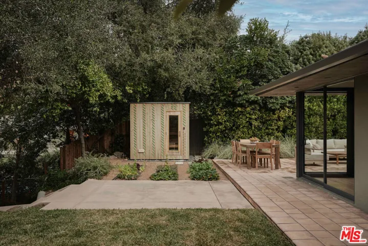 Welcome to this single-story, 4-bedroom, 3.5-bath mid-century residence tucked away on a peaceful cul-de-sac in Pasadena’s prestigious San Rafael neighborhood. Set on a rare 17,325 sq ft parcel abutting San Remo Road, the home offers exceptional privacy, space, and design pedigree in an idyllic setting.Inside, an expansive living and dining area welcomes you with floor-to-ceiling windows and doors that frame views of the lush, landscaped backyard. A striking central fireplace and hearth anchor the space, creating a warm and inviting atmosphere ideal for gathering or relaxing.The remodeled chef’s kitchen features custom cabinetry, quartz countertops, vibrant tile accents, professional-grade stainless-steel appliances, and a stunning center island with seating for eight. Bath and kitchen hardware by Waterworks elevate every detail, while an adjacent pantry with open shelving and abundant storage adds both function and charm. A chic powder room completes the main living area.Down the hall are four spacious bedrooms and three bathrooms all completely renovated with custom Italian terrazzo floors and walls. A serene owner’s suite with private bath, sunken oversized bathtub, direct access to the backyard. Underneath the suite with hidden access is a 500 sq ft bunker encased in cement and steel, complete with walk in vault. The house presents the pinnacle of luxury design and security.Outside, a secret garden unfolds lush, layered, and completely private. A welcoming patio creates seamless indoor-outdoor living, while terraced steps lead to a beautifully landscaped, expansive grassy yard and a vast flat expanse beyond, awaiting your creative vision whether a pool, guest house, or garden retreat.