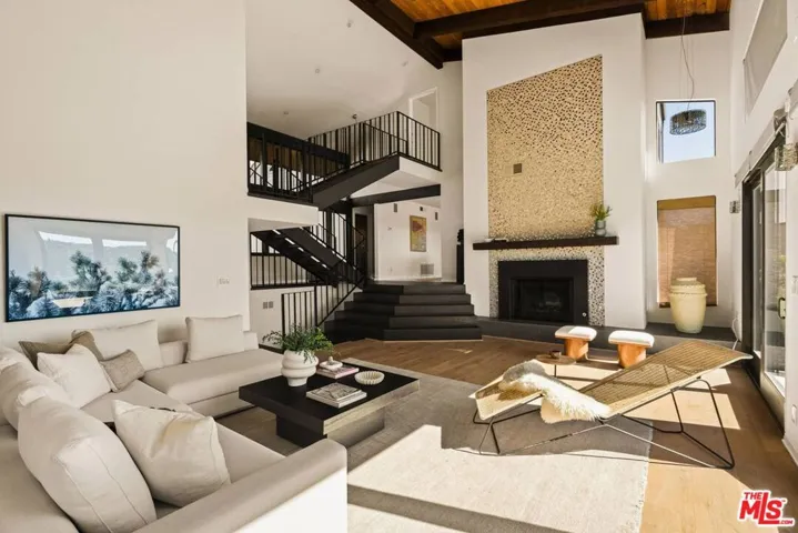 Panoramic reservoir and hillside views define this three-story contemporary set above the Silver Lake Reservoir on a quiet cul-de-sac. Located on Lindsay Lane within the Ivanhoe Elementary School District, the home offers architectural scale, privacy, and close proximity to the neighborhood’s vibrant center. The entry level is dedicated to the home’s public spaces, where a soaring two-story living room anchors the floor plan. The living room, formal dining room, and kitchen with breakfast area flow effortlessly together, opening to terraces that capture reservoir and hillside views including the Observatory and Hollywood sign. An office and powder room complete this level. The entire upper level is devoted to the primary suite, creating a private retreat with expansive views, a fireplace, and a generous dressing suite that includes an approximately 170-square-foot dressing room plus a second walk-in closet. The bath features a dual sink vanity, a built-in dressing table, large soaking tub positioned to capture the view, steam shower, and abundant storage. One level below the main floor is a spacious family room with an adjacent arched alcove well suited for a study, workspace, or bar setup. Two additional bedrooms and a full bath complete the lower level, with all rooms opening to a patio and hillside stairway leading through the terraced garden to the lower yard. The garden unfolds into a series of outdoor spaces with built-in seating, and fire pit. Tucked below the view line, this private lower garden lounge offers a peaceful setting for reading, relaxing, or entertaining. Additional features include a direct-access two-car garage with EV charger, solar panels, and a whole-house built-in sound system. Just moments from the Silver Lake Reservoir path, local cafes, restaurants, and markets, this hillside home offers a compelling architectural setting and a rare opportunity to bring your design vision to one of Silver Lake’s most sought-after locations.