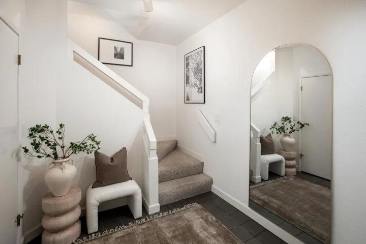 Distinctively designed townhome style residence in the exclusive gated Harbor Knolls community overlooking the natural beauty of Arana Gulch and thoughtfully positioned to offer a sense of privacy. Just moments from Santa Cruz Harbor and Twin Lakes Beach, this private coastal retreat captures expansive views and refreshing ocean breezes from a generous sun deck created for effortless indoor outdoor living. Vaulted ceilings, skylights and expansive windows create a bright and airy interior filled with natural light. The living room, anchored by a new fireplace insert, flows seamlessly into the dining area and updated kitchen featuring new stainless steel appliances. The exceptionally spacious primary suite offers impressive scale with a dedicated office alcove ideal for working from home, dual closets, and adjoining bath. Plantation shutters, inside laundry enhance everyday comfort. Formal entry with welcoming foyer and extra large storage closet. Attached one car garage with freshly painted interior plus driveway and guest parking. Residents enjoy a sparkling community pool, spa, sauna and poolside restroom. Ideally located mid county with convenient access to local beaches, Westside, Capitola Village, Santa Cruz Harbor, restaurants, markets, boutiques and scenic coastal trails.