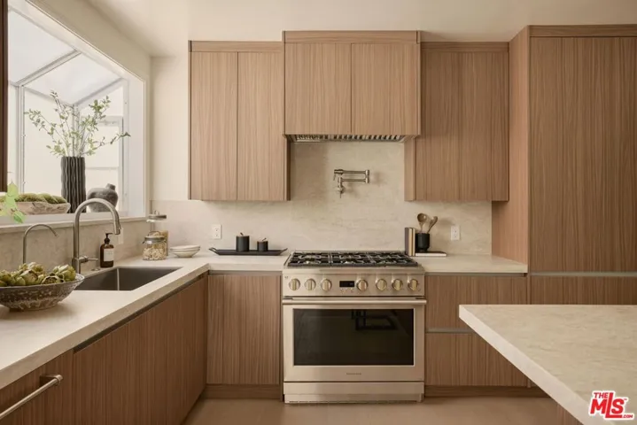 Set behind gates on a coveted residential block south of Burton Way in Beverly Hills, this 1931 Spanish jewel box combines timeless architecture with thoughtful modern refinement. Lush landscaping and a private garden courtyard create a gracious arrival, and the home’s facade displays rich architectural texture, original detailing, and beautifully preserved period character. The block is known for its established residential character while remaining closely connected to the heart of Beverly Hills. The home preserves the scale, proportion, and character that define Spanish homes of this era. Inside, the dramatic living room is defined by well-proportioned scale and soaring faceted ceilings accented by original plaster crown moldings and sculptural corbel detailing. A statement fireplace anchors the space, while a large arched picture window frames the garden beyond and reinforces the symmetry. Natural light moves gracefully through the interior throughout the day, while the design balances the home’s Spanish heritage with a refined modern interpretation. The dining room and kitchen connect naturally, creating an easy flow for everyday living and informal gatherings. Bedrooms are generously proportioned, including two en suite, and a separate office provides additional space for work or study. Bathrooms have been thoughtfully updated with timeless materials and sophisticated modern fixtures. Outdoor spaces extend naturally from the home, highlighted by a significant stainless steel outdoor kitchen and chef’s center designed for outdoor dining and entertaining. Adjacent to the yard, a detached bonus space currently serves as a family play area and offers flexible space for a variety of uses. Ideally positioned within close reach of the Beverly Hills Triangle, the home offers classic architecture with effortless access to the best of Beverly Hills dining and shopping. A 1931 Spanish jewel box in one of Beverly Hills’ most desirable residential pockets.