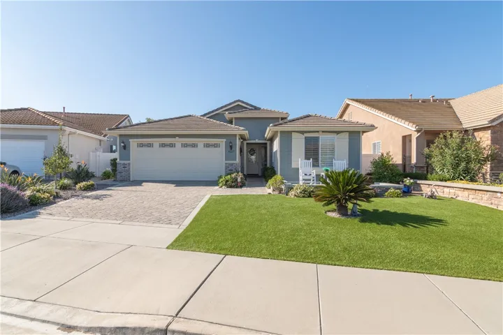 Murrieta Four Seasons 55+ Community. This is a Craftsman 3 Floor Plan. FORMER MODEL HOME! 2 bedrooms, 2 bathrooms, office, living room/dining room, kitchen, and separate laundry room with a utility sink. Remodeled kitchen and remodeled bathrooms with designer touches. Primary bedroom was recently upgraded with luxury vinyl plank flooring. Stainless steel appliances, custom cabinet pullouts in kitchen, plantation style shutters, travertine flooring in main living areas, cathedral ceilings, arched doorways, granite kitchen counters with built-in wine cabinet. Leaded glass double doors opening to office with built in desks, and bookcases. Ceiling fans in all rooms and back covered patio area. Quiet Cool whole house fan. Low maintenance front yard with artificial turf, both front driveway, entry and backyard have decorative pavers, making the outdoor space great for entertaining. Epoxy flooring in garage with built in storage hangers and cabinets. White vinyl fencing. All of this is located within the meticulously maintained Four Seasons Community which is very close to Temecula wine country. The Four Seasons Lodge is a 10-acre facility for the use of the residents and their guests only. The Lodge has Pickleball Courts, Tennis Courts, Heated Pool, Spa, BBQ Grilling area, Bocce ball, putting green and driving range, horseshoe pits, basketball court, library, gym, beauty salon and more. This is a very active 55+ Community with several clubs including a golf club and bowling league.