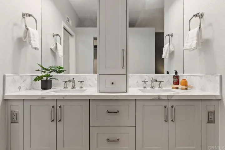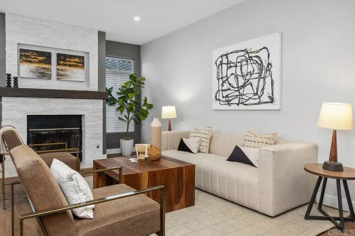 Feels like a new model house! Located atop the scenic hills of Rancho Del Oro, this meticulously renovated 1,411 Sq FT 3-bed, 2-bath single-story townhome offers the sleek feel of new construction with the ease of condo living. Fully transformed in 2023, the interior boasts all-new plumbing, designer paint, modern baseboards, and wide-plank wood flooring throughout. The open-concept layout features a gourmet-inspired atmosphere, highlighted by dual private balconies that invite coastal breezes. Retreat to the primary suite, a private sanctuary featuring its own balcony, a sprawling walk-in closet, and a spa-like upgraded bathrooms and model- like kitchen with Quartz and stones. Situated within a premier gated community, residents enjoy resort-style amenities including a pool, jacuzzi, and gym, plus stunning ocean views from common areas. This turn-key residence includes a one-car garage plus an assigned space, combining modern luxury with an unbeatable San Diego location.