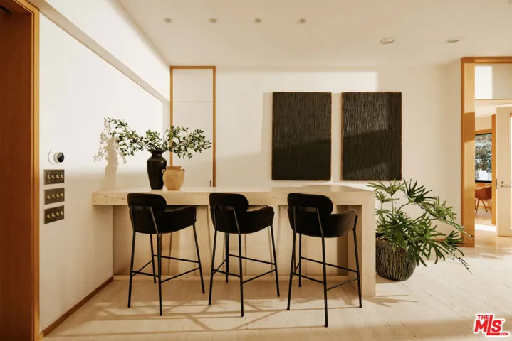 Offering 8,350 square feet of living space on an expansive 9,000 SF lot, 622 24th Street stands among the largest and most architecturally significant homes in Santa Monica’s coveted Gillette Regent Square, north of Montana Avenue. Designed by world-renowned architect Irving Tobocman, his only residential project in California, this striking Bauhaus contemporary residence represents a rare fusion of scale, architectural pedigree, and timeless materials seldom found in the neighborhood. Defined by full-slab Italian travertine floors, custom oak millwork, and expansive walls of glass, the home reflects Tobocman’s disciplined approach to proportion, natural light, and spatial clarity. A newly renovated 2026 kitchen anchors the residence, appointed with dual Sub-Zero refrigerators, Gaggenau ovens, oversized island, breakfast area, desk, and walk-in pantry, all framed by a distinctive semi-circular window overlooking the backyard oasis. The main level unfolds through dramatic entertaining spaces, including a formal living room and dining area that flow into an expansive family room featuring a travertine bar, built-in Sonos system, and floor-to-ceiling sliding glass walls opening to the private grounds and pool, creating seamless indoor-outdoor living. Outside, the property offers a rare level of privacy for homes north of Montana Avenue, enhanced by mature landscaping, a newly constructed front privacy wall and hedge, and a resort-like backyard with brand-new saltwater pool, spa, and baja. Upstairs, a dramatic double-height corridor with architectural glass block leads to four spacious en-suite bedrooms with oversized walk-in closets, arranged around a sunken lounge. The primary suite serves as a private retreat featuring dual bathrooms, a jacuzzi soaking tub, an expansive walk-in closet, and a 35-foot private terrace overlooking the pool and garden. The lower level introduces an impressive 30′ x 47′ recreation room, offering exceptional flexibility for entertaining, recreation, or wellness use. This level also includes a newly renovated 2026 laundry room, second office, 371 SF storage room, and a private guest suite with its own living room and full bath. Located moments from Brentwood Country Mart, Brentwood Country Club, Franklin Elementary, and the boutiques and cafs of Montana Avenue, 622 24th Street represents a rare opportunity to own a one-of-a-kind architectural residence of scale and sophistication in Santa Monica’s most sought-after neighborhood.