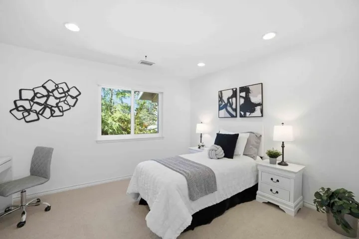 Welcome to 15931 Camino Del Cerro in Los Gatos, an exceptional 4-bedroom, 2.5-bathroom home offering 2,846 square feet of thoughtfully designed living space on an expansive 11,981 sq ft lot that truly lives larger. Tucked away at the end of a cul-de-sac on one of the quietest streets in Los Gatos, this location is hard to beat. The well-designed floor plan features an open-concept main level with a spacious living room and dining area flowing seamlessly into the remodeled kitchen and family room. The kitchen boasts a gas cooktop, new quartz countertops, and abundant cabinet space, opening to the inviting family room with a custom built-in entertainment center and a beautifully appointed fireplace. Upstairs offers four generous bedrooms, including a spacious primary suite and a remodeled hall bathroom. The backyard is a true entertaining oasis with pavers, turf, drought-tolerant landscaping, a striking fountain, and a new pergola with electric shades and space for an outdoor TV. A detached studio, not included in the square footage, is ideal for an office or gym. Hardwood and tile floors, new carpet, updated lighting, a laundry room, and two fireplaces complete this home. If you are a discerning buyer looking for the very best Los Gatos has to offer, this is the house for you.